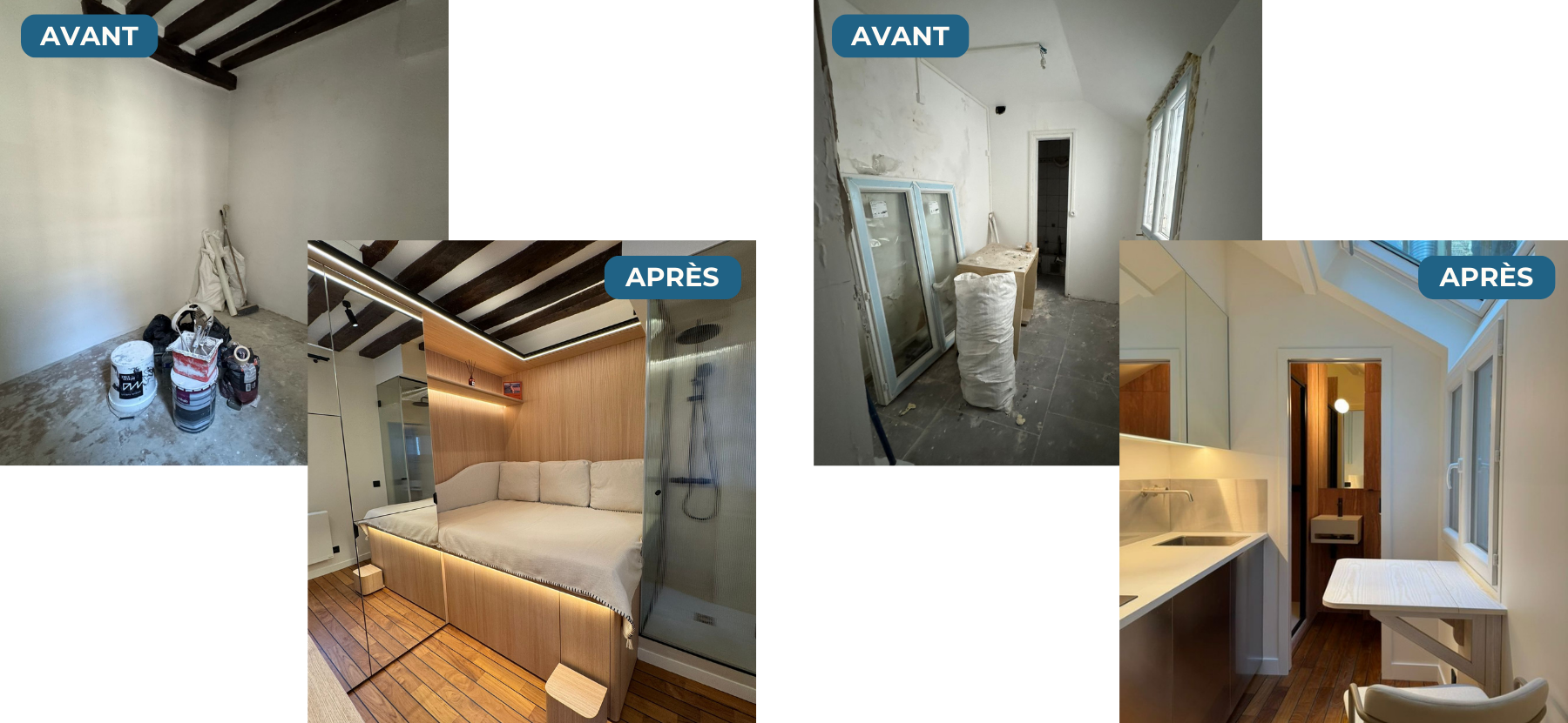 Les logements sont entièrement rénovés et réaménagés grâce à des modules sur-mesure, pensés pour optimiser chaque mètre carré, le confort et le design.